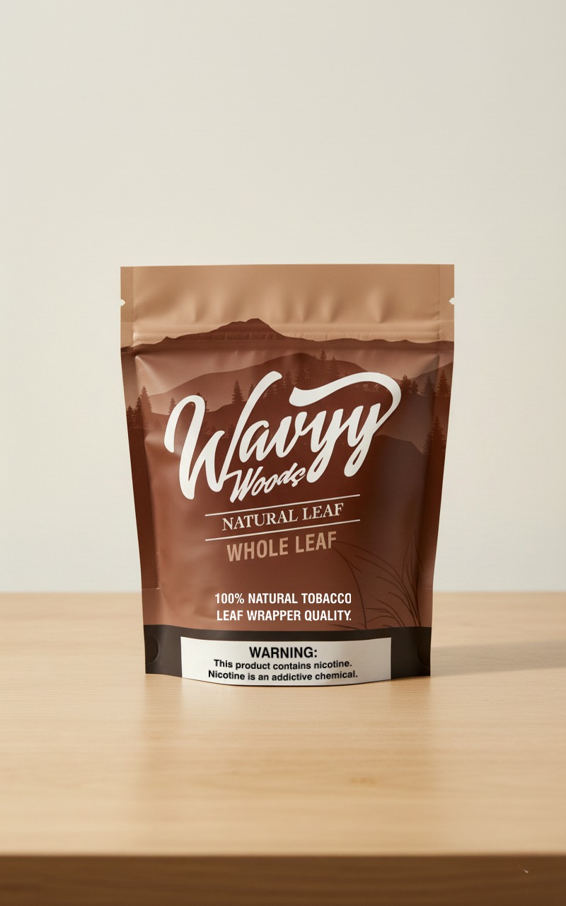 Wavy Woods are natural tobacco wraps handmade in the Dominican Republic, cut from premium whole-leaf tobacco.